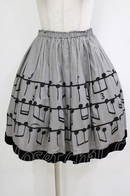 Jane Marple / Musical Noteギャザースカート M グレー H-26-01-25-015-JM-SK-KB-ZH