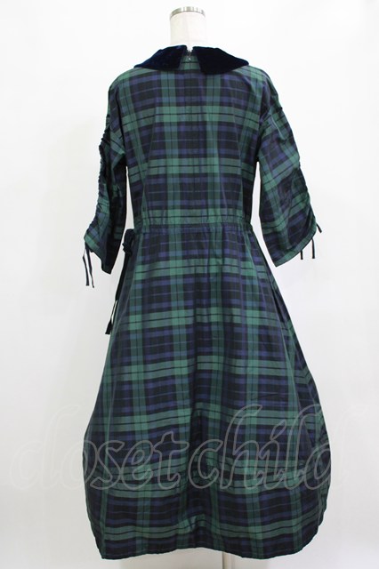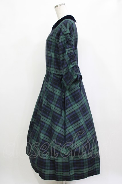 Jane Marple Dans Le Salon / メモリアルチェックベルベットカラードレス グリーン×ネイビー H-26-01-25-002-JM-OP-KB-ZH