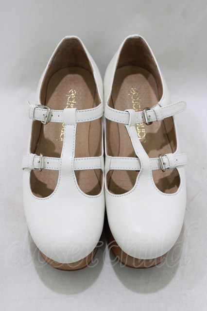 Jane Marple / ウッドソール2ストラップシューズ S ホワイト H-26-01-25-062-JM-SH-KB-ZH