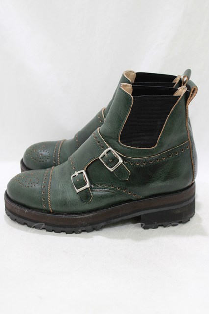 Jane Marple Dans Le Salon / モンクストラップアンクルブーツ S グリーン H-26-01-25-065-JM-SH-KB-ZH