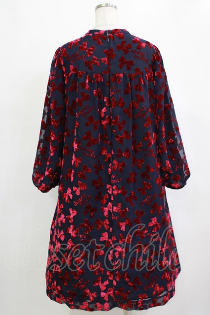 Jane Marple / Winter ribbonsスモッキングドレス ネイビー×ワインレッド H-26-01-25-008-JM-OP-KB-ZH [2100030000084204-H-26-01-25-008-JM-OP-KB-ZH]
