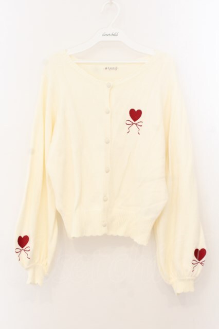 axes femme / ハートリボン刺繍ニットカーディガン F キナリ O-26-01-22-062-AX-TO-OW-OS [2100080000072759-O-26-01-22-062-AX-TO-OW-OS]