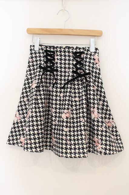 LIZ LISA / 千鳥花柄タックスカート クロ×シロ O-26-01-22-010-LO-SK-IG-OS
