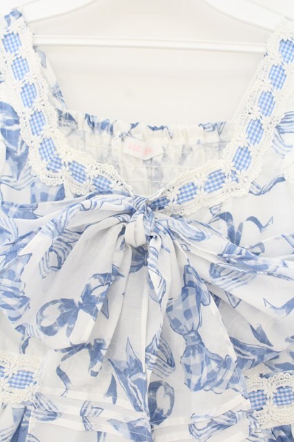 LIZ LISA / リボン柄ワンピース シロ×サックス O-26-01-22-012-LO-OP-IG-OS [2100080000071093-O-26-01-22-012-LO-OP-IG-OS]