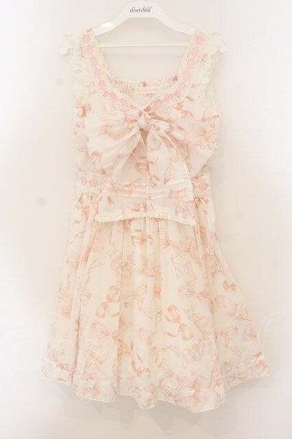 LIZ LISA / リボン柄ワンピース シロ×ピンク O-26-01-22-023-LO-OP-IG-OS