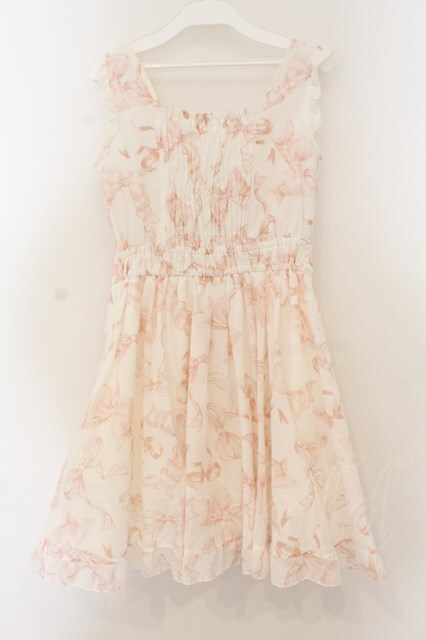 LIZ LISA / リボン柄ワンピース シロ×ピンク O-26-01-22-023-LO-OP-IG-OS [2100080000071091-O-26-01-22-023-LO-OP-IG-OS]