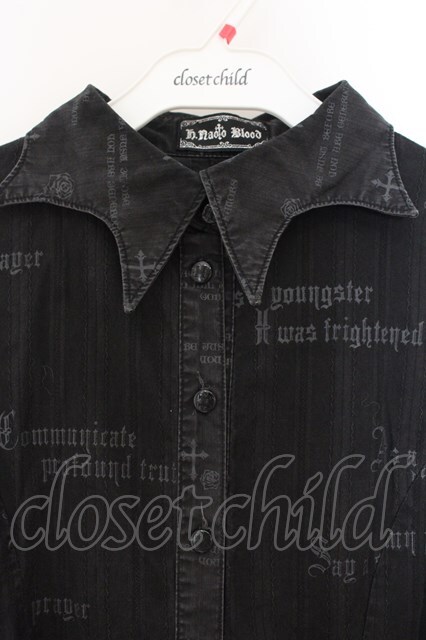 h.naoto Blood / 英字プリント裾デザインブラウス ブラック(色褪せによりグレー) O-26-01-22-050-HN-BL-IG-OS