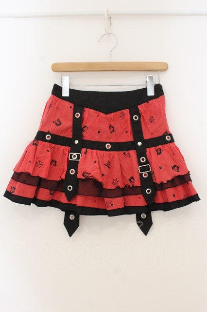 HANGRY&ANGRY / H&Aフェイスプリントしっぽ付きティアードスカート レッド×ブラック O-26-01-22-042-HN-SK-IG-OS [2100080000049933-O-26-01-22-042-HN-SK-IG-OS]