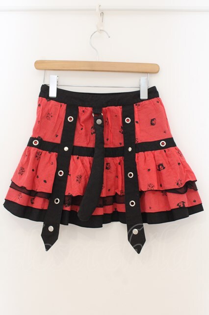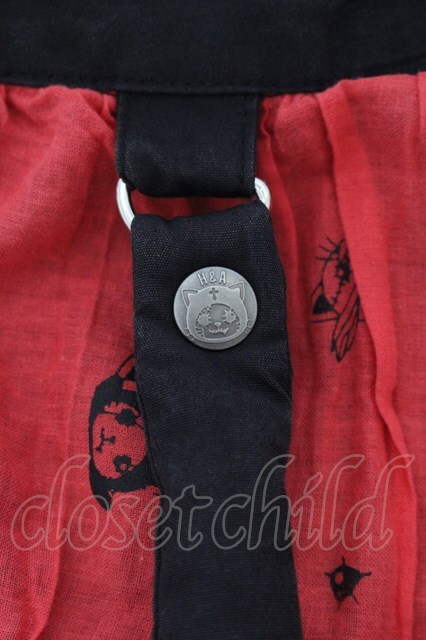 HANGRY&ANGRY / H&Aフェイスプリントしっぽ付きティアードスカート レッド×ブラック O-26-01-22-042-HN-SK-IG-OS