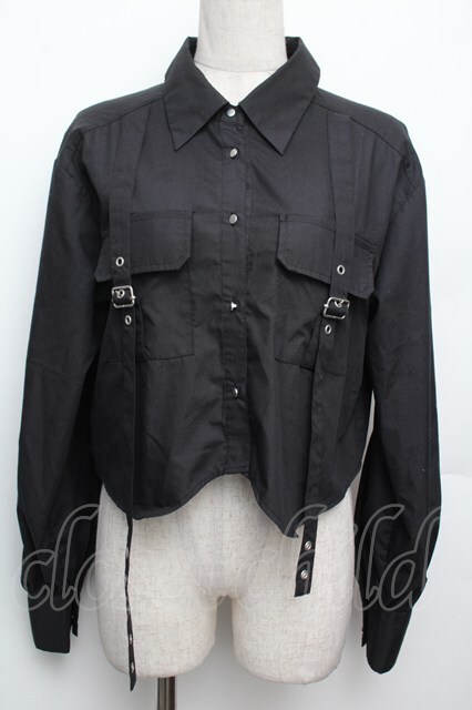 axes femme / ハトメ使いショートシャツ 黒 S-26-01-21-026-AX-BL-AS-ZS