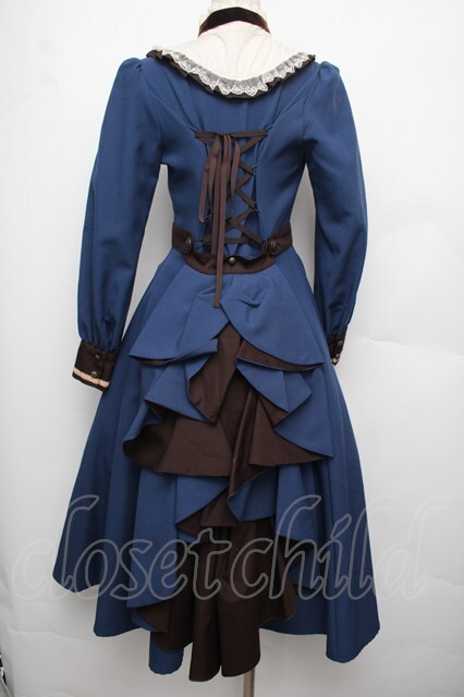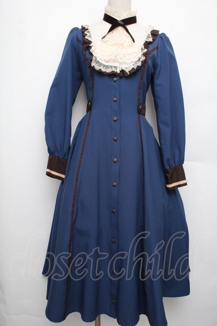Innocent World / フルールバッスルドレス(長袖) M ブルーxショコラ S-26-01-21-035-IW-OP-HR-ZS [2100020000035899-S-26-01-21-035-IW-OP-HR-ZS]