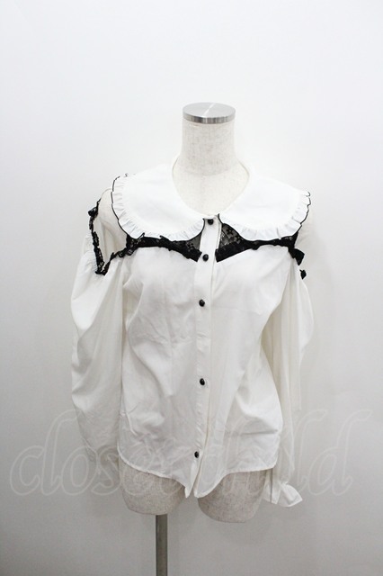 Ank Rouge / デコルテレースオフショルブラウス 白X黒 I-26-01-22-002-CA-BL-SA-ZI [2100060000049282-I-26-01-22-002-CA-BL-SA-ZI]