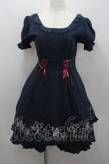 Amavel / ティーセット刺繍コットンワンピース ネイビーX赤X白 I-26-01-22-036-CA-OP-SA-ZI