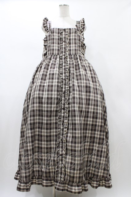 FLC / 皆方由衣コラボ/チェックフリルジャンパースカート 4L ブラウン H-26-01-27-057-0-OP-NS-ZH [2100030000084788-H-26-01-27-057-0-OP-NS-ZH]