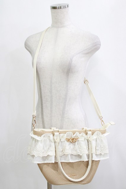 axes femme / レースフリルかごトート アイボリー H-26-01-26-1041-AX-BG-NS-ZH