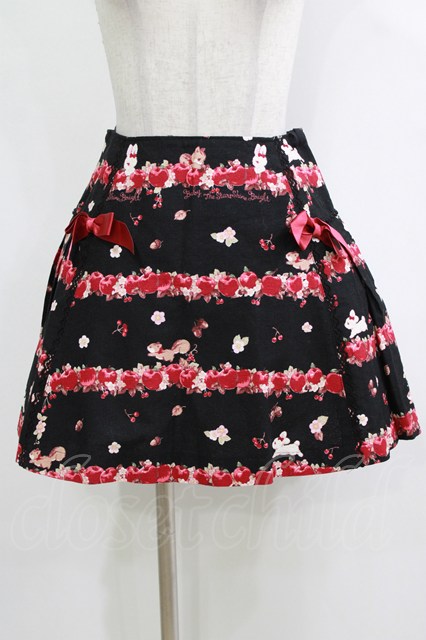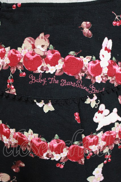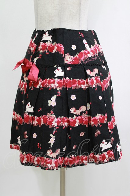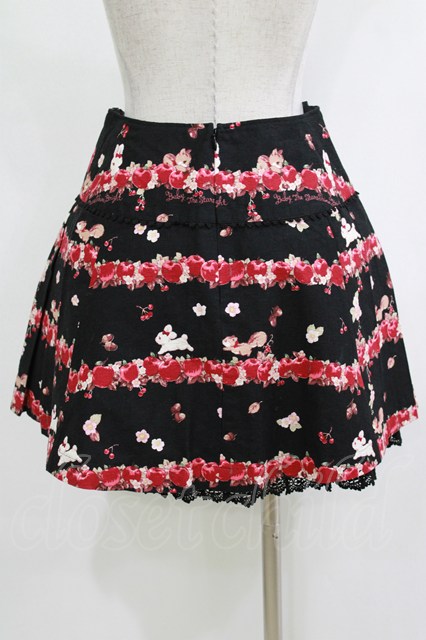 BABY,THE STARS SHINE BRIGHT / Pomme rouge〜うさぎとりすのりんごの森〜柄プリーツスカート Free ブラック H-26-01-26-1003-BA-SK-NS-ZH