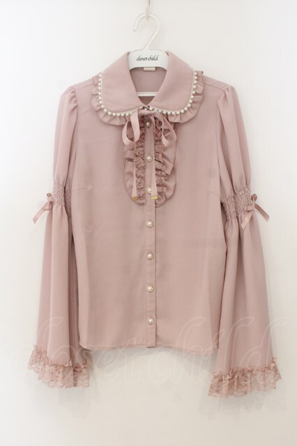 Secret Honey / パール襟フリルレース長袖ブラウス 2 ピンク O-26-01-24-028-CA-BL-OW-OS