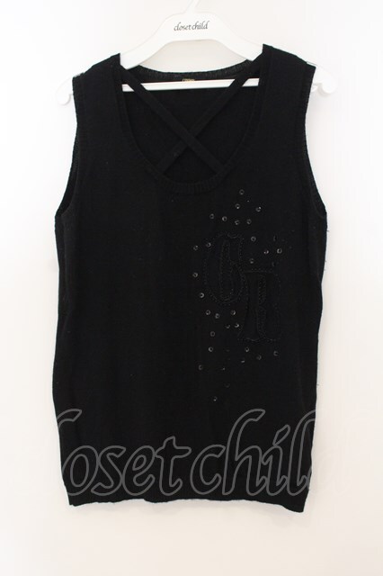 COMMO ROUGE / ロゴビーズニットタンク ブラック O-26-01-24-035-PU-TO-IG-ZT010