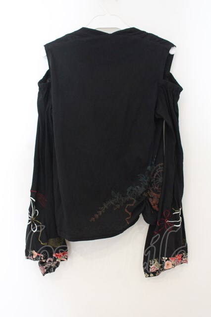 gouk / 和柄切り替えオフショルカットカーディガン ブラック O-26-01-24-003-GO-TO-IG-OS