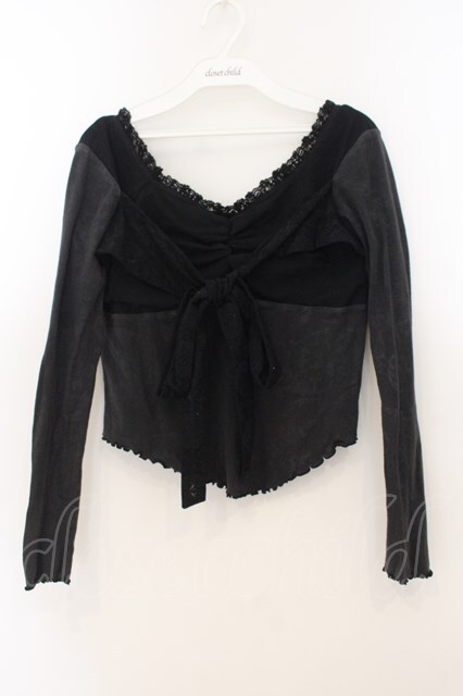 h.naoto Blood / 胸リボンプリントカットソー ブラック(色褪せによりグレー) O-26-01-24-031-HN-TO-IG-OS