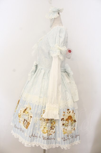 BABY,THE STARS SHINE BRIGHT / 不思議の国のアリス 付け襟・カチューシャ付きドレス サックス O-26-01-24-056-BA-OP-IG-OS
