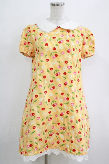Heart E / ギンガムチェリーワンピース Free イエロー H-26-01-23-083-LO-OP-NS-ZH