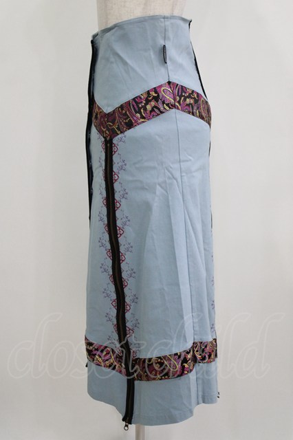 Ozz oneste / ジャガード切替ロングスカート ライトブルー H-26-01-28-019-OO-SK-KB-ZH
