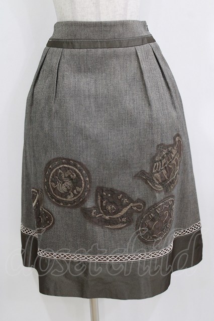 Jane Marple / ティーポットデコパージュミドルスカート ブラウン H-26-01-28-017-JM-SK-KB-ZH [2100030000084643-H-26-01-28-017-JM-SK-KB-ZH]