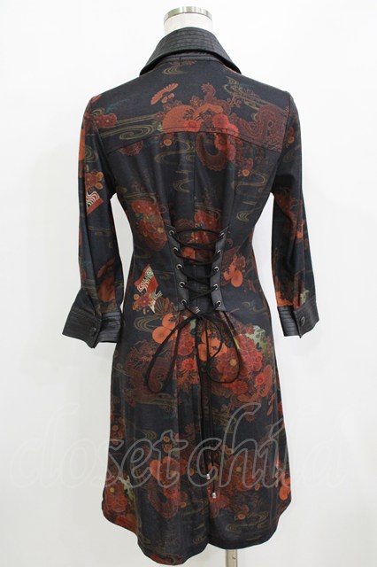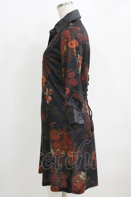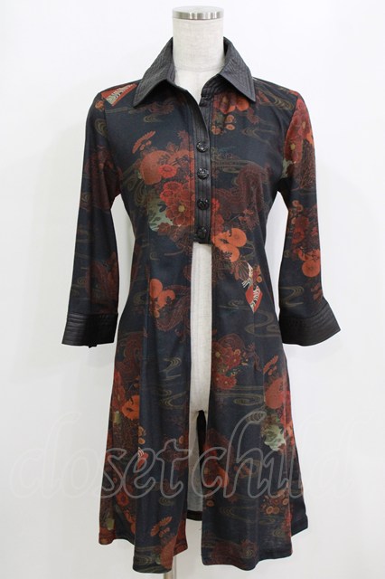 Qutie Frash / 和柄オーバーブラウス ブラック H-26-01-28-034-QU-BL-KB-ZH [2100030000084483-H-26-01-28-034-QU-BL-KB-ZH]