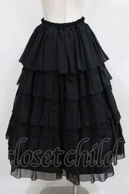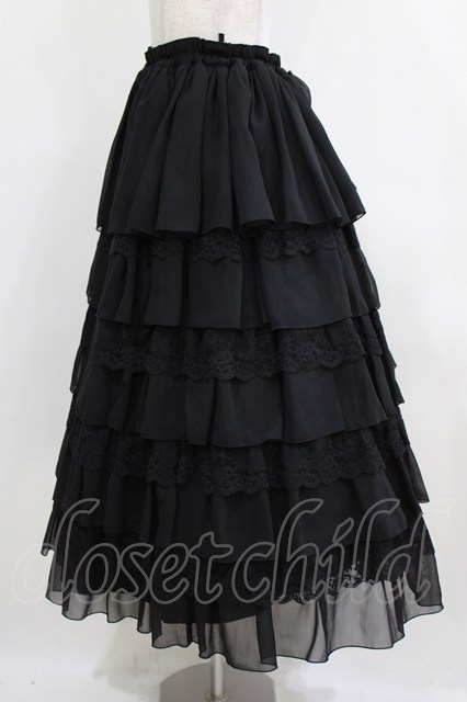 MARBLE / 【パニエ別タイプ】総フリルレースロングボリュームドレススカート 黒 H-26-01-28-008-GO-SK-AK-ZH