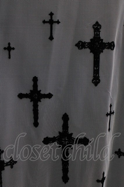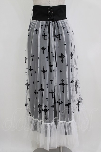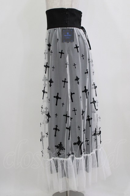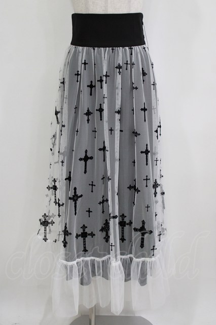 Moi-meme-Moitie / 十字架フロッキーハイウエストスカート 9 ホワイト×ブラック H-26-01-28-029-MO-SK-KB-ZH
