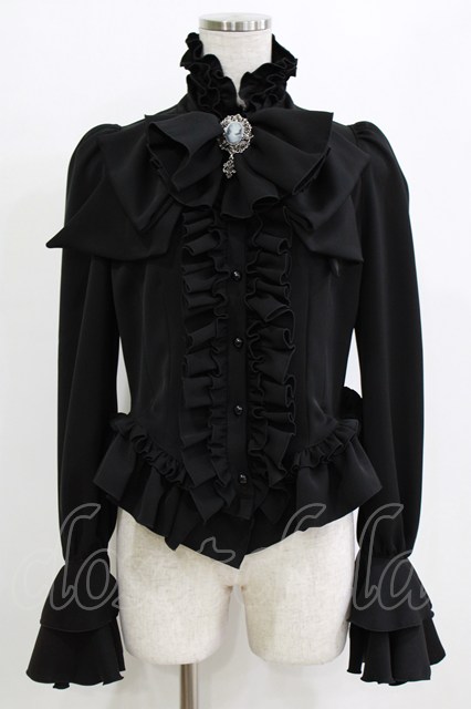 MARBLE / カメオ付きリボンタイフリルブラウス 黒 H-26-01-28-045-GO-BL-AK-ZH