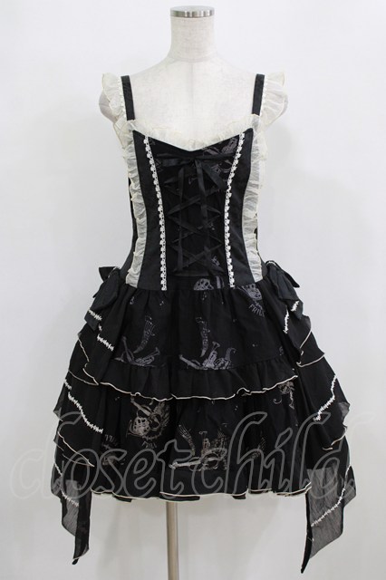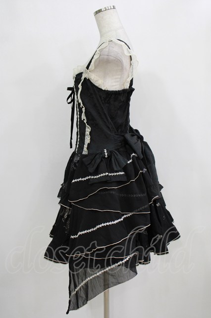 FRILL / サイドリボンジャンパースカート ブラック H-26-01-28-009-HN-OP-KB-ZH
