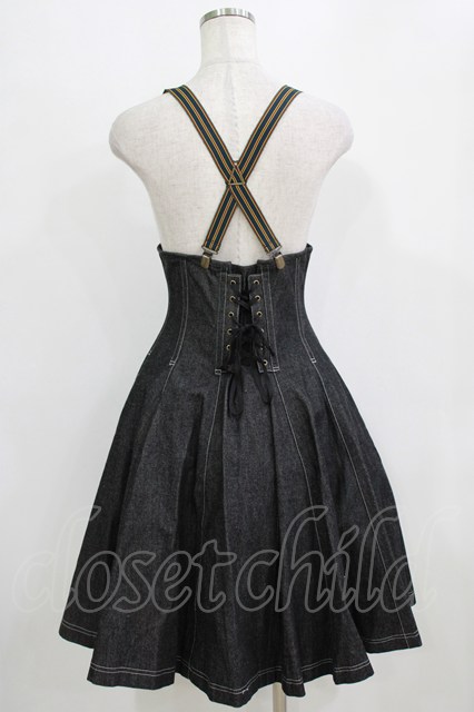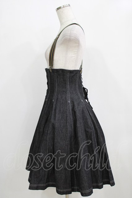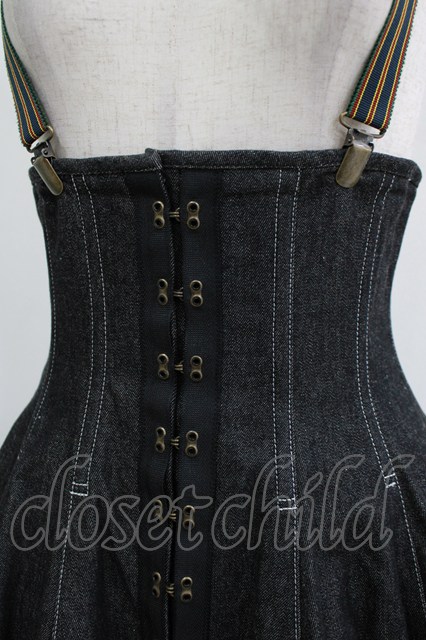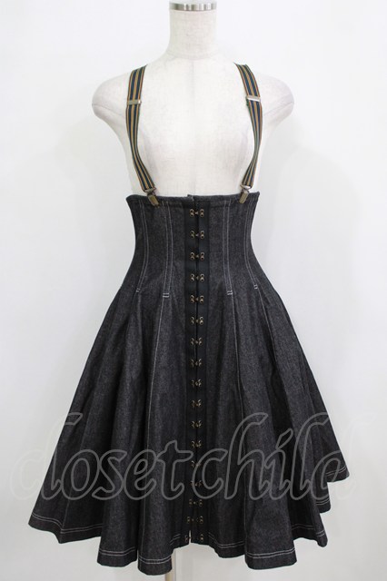 EXCENTRIQUE / サスペンダー付デニム・コルセットスカート M/L ブラック H-26-01-28-007-EL-SK-KB-ZH