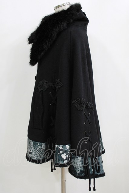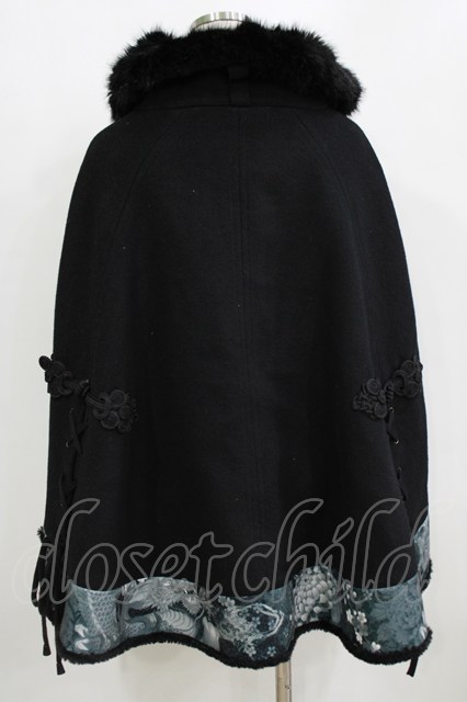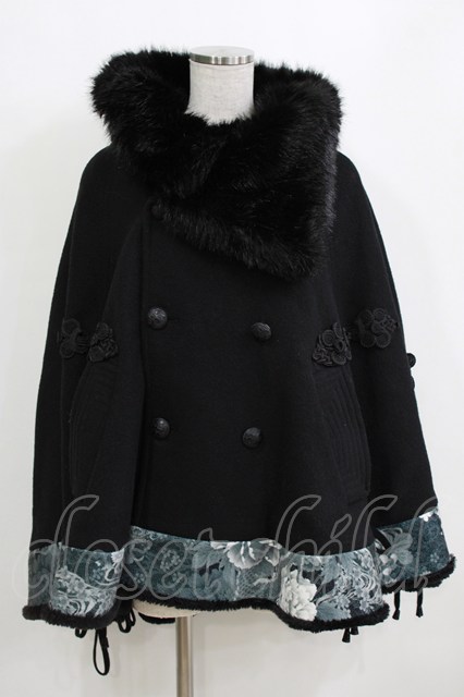 Qutie Frash / ファーカラーポンチョコート 黒 H-26-01-28-024-QU-JA-KB-ZH [2100030000084481-H-26-01-28-024-QU-JA-KB-ZH]