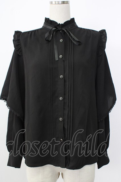 axes femme / レイヤードフレア袖ブラウス 黒 T-26-01-26-010-AX-BL-SA-ZT [2100060000041844-T-26-01-26-010-AX-BL-SA-ZT]