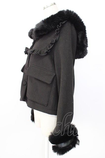 MA*RS / サイド編み下げ&ファースクエア衿ショートコート 黒 T-26-01-26-025-EL-CO-SA-ZT