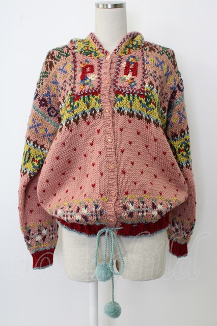 PINK HOUSE / PHデザイン裾ポンポンフードニットカーディガン ピンク T-26-01-26-026-LO-TO-SA-ZT [2100060000035720-T-26-01-26-026-LO-TO-SA-ZT]