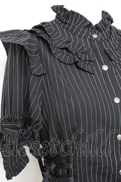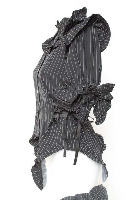 Chalmiere / ストライプリボンブラウス M 黒 Y-26-01-24-047-LO-BL-SZ-ZY [2100070000057042-Y-26-01-24-047-LO-BL-SZ-ZY]