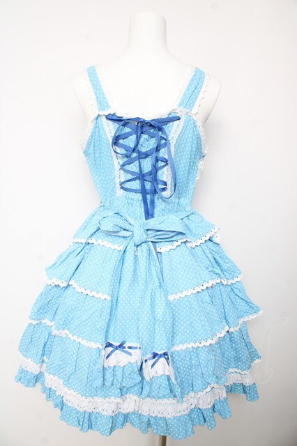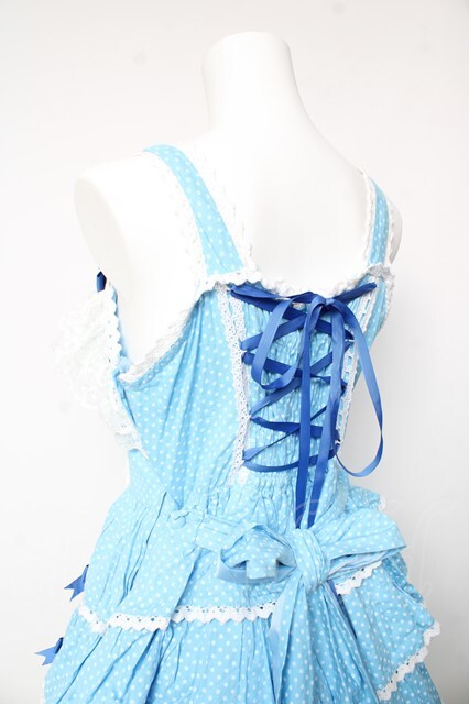 AND ROMEO / 小さなさくらんぼと細ストライプのジャンパースカート ブルー Y-26-01-24-112-LO-OP-SZ-ZY