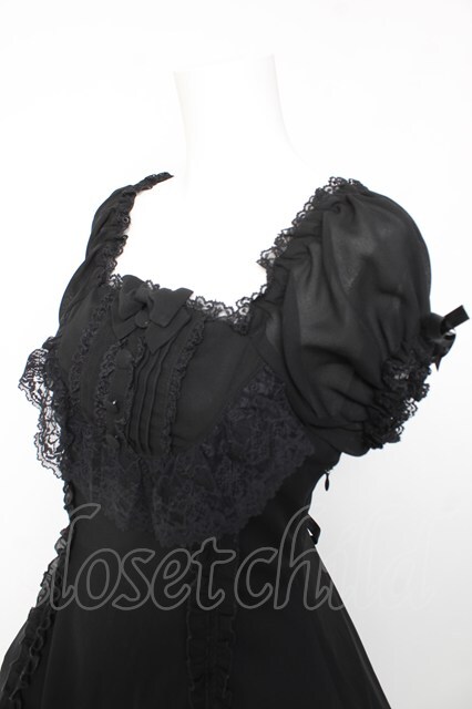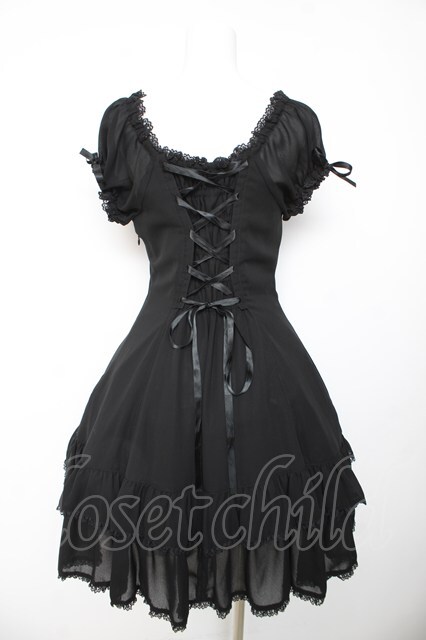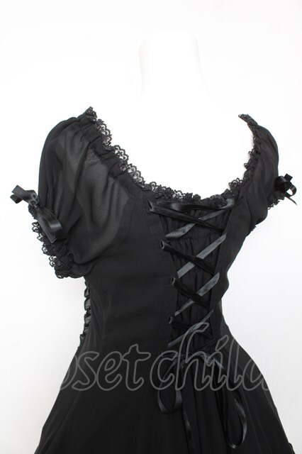 metamorphose / 半袖裾フリルワンピース ブラック Y-26-01-24-113-ME-OP-SZ-ZY