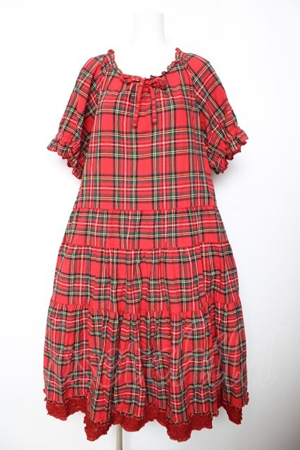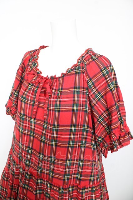 PINK HOUSE / コットンリネンタータンチェックロングティアードワンピース F 赤 Y-26-01-24-122-LO-OP-SZ-ZY [2100070000057256-Y-26-01-24-122-LO-OP-SZ-ZY]