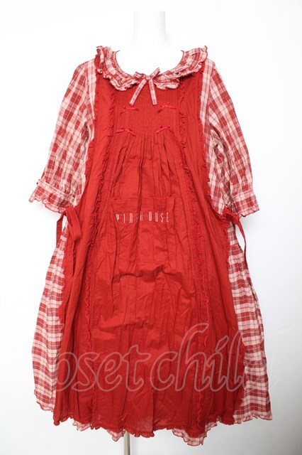 PINK HOUSE / エプロン付きオリジナルチェックワンピース F 赤 Y-26-01-24-125-LO-OP-SZ-ZY