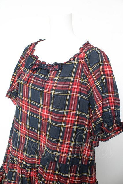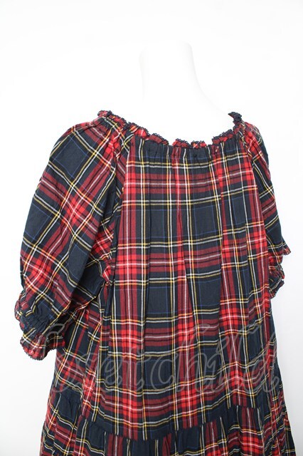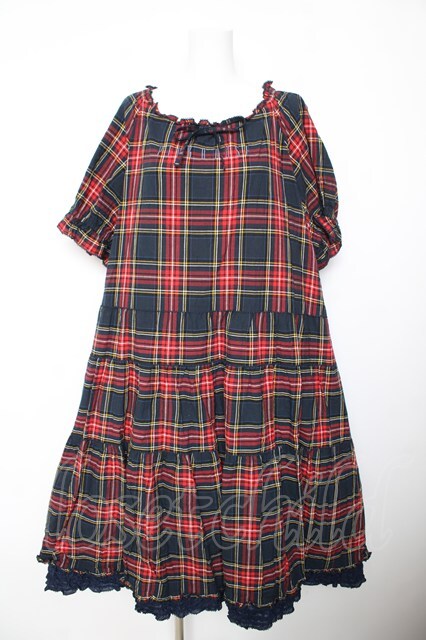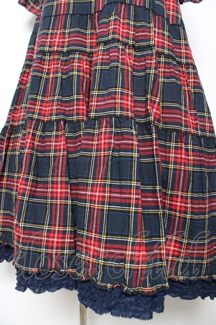 PINK HOUSE / コットンリネンタータンチェックロングティアードワンピース F 紺 Y-26-01-24-126-LO-OP-SZ-ZY