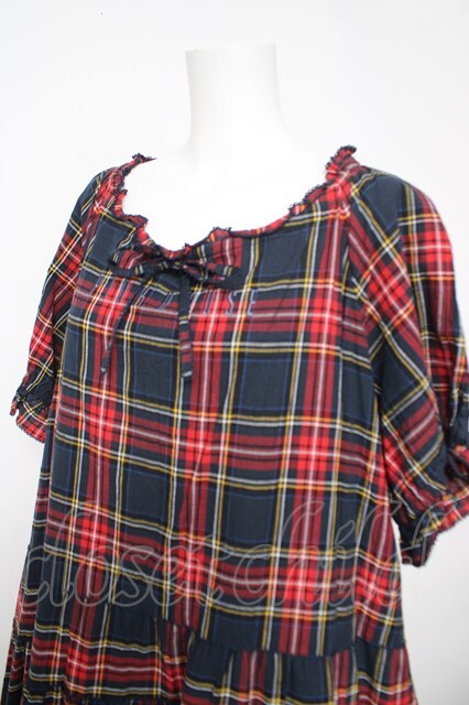 PINK HOUSE / コットンリネンタータンチェックロングティアードワンピース F 紺 Y-26-04-24-113-LO-OP-SZ-ZY