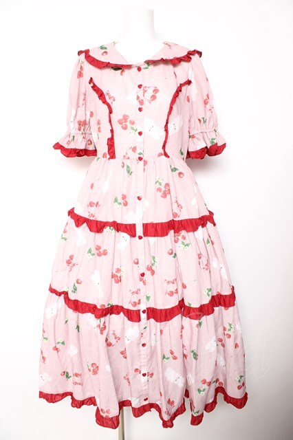 Chalmiere / チェリーバニー柄ワンピース M ピンク Y-26-01-24-131-LO-OP-SZ-ZY