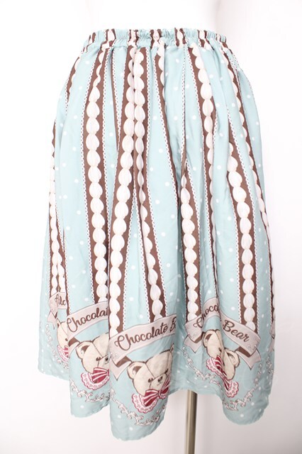 axes femme kawaii / チョコベア柄スカート ミント Y-26-01-24-141-AX-SK-SZ-ZY