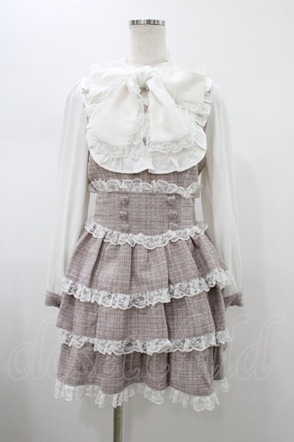 Ank Rouge / リボンタイツイードティアードワンピース M ピンク H-26-01-29-022-CA-OP-NS-ZH [2100030000084878-H-26-01-29-022-CA-OP-NS-ZH]