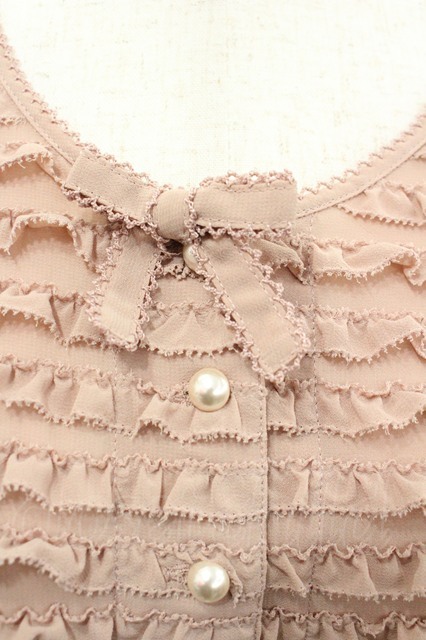 KANEKO ISAO / パールボタンピコフリルボーダーブラウス ピンク I-26-01-24-015-EL-BL-SA-ZI