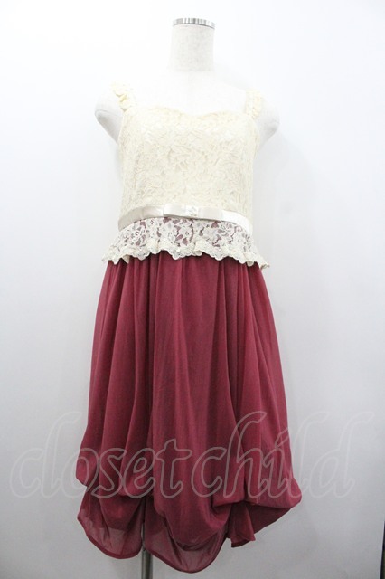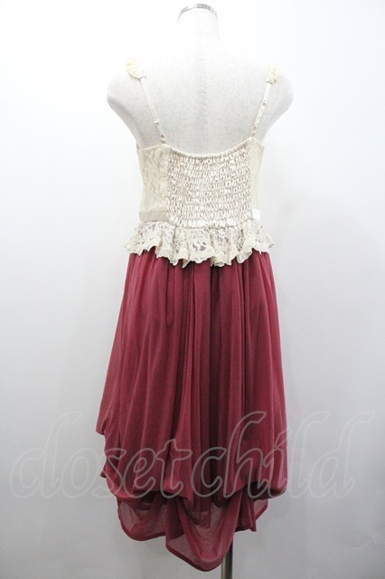 axes femme / レース切替キャミワンピース アイボリーXボルドー I-26-01-24-051-AX-OP-SA-ZI